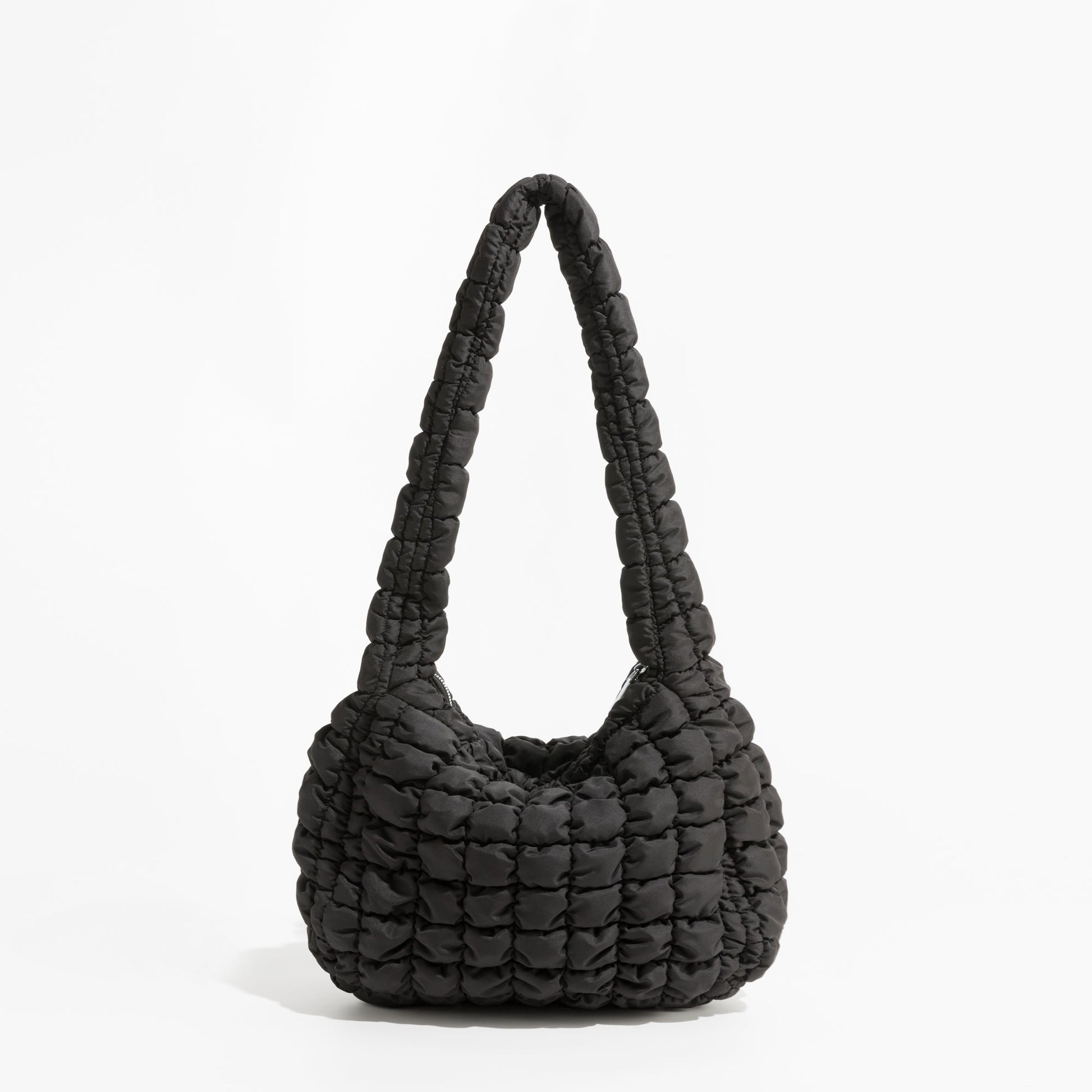 Chic and sophisticated, this quilted purse is featuring a sleek zipper closure is a timeless statement piece perfect for everyday essentials, combining fashion-forward style with durable versatility.